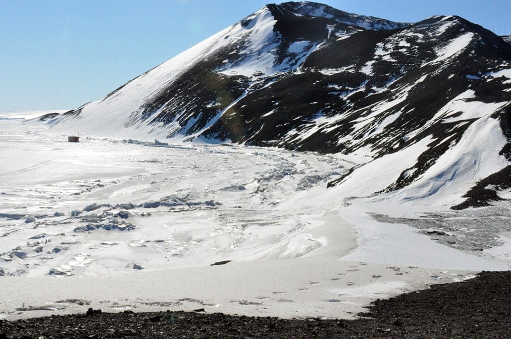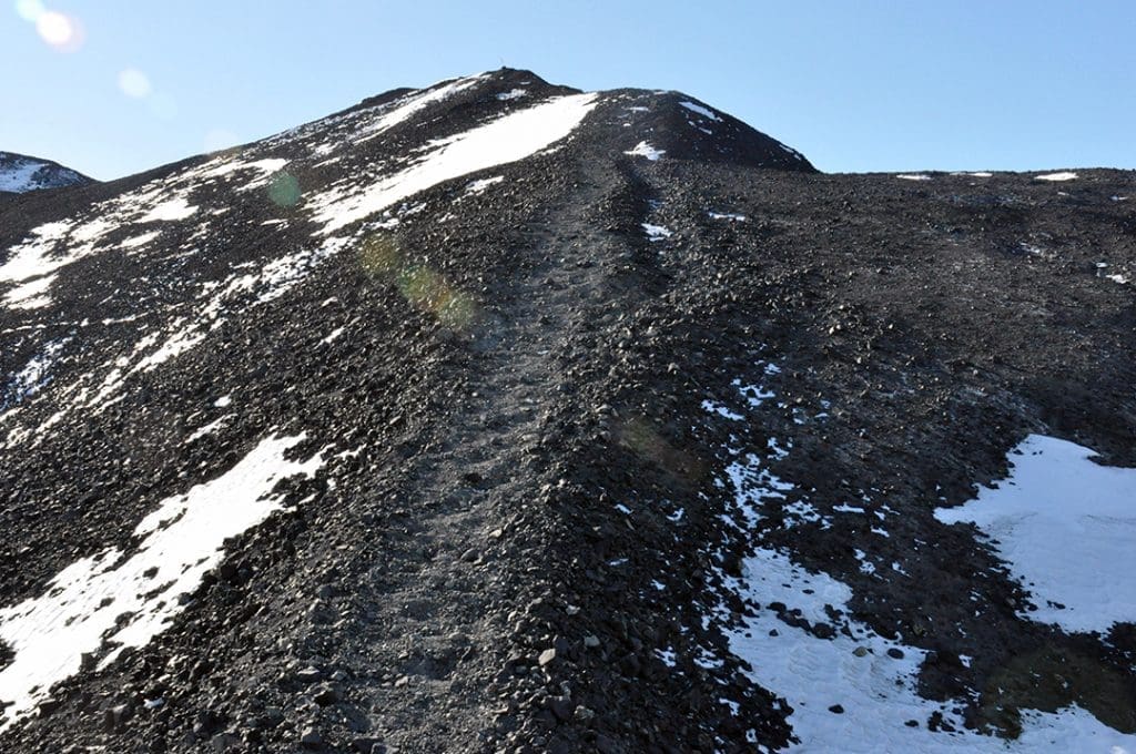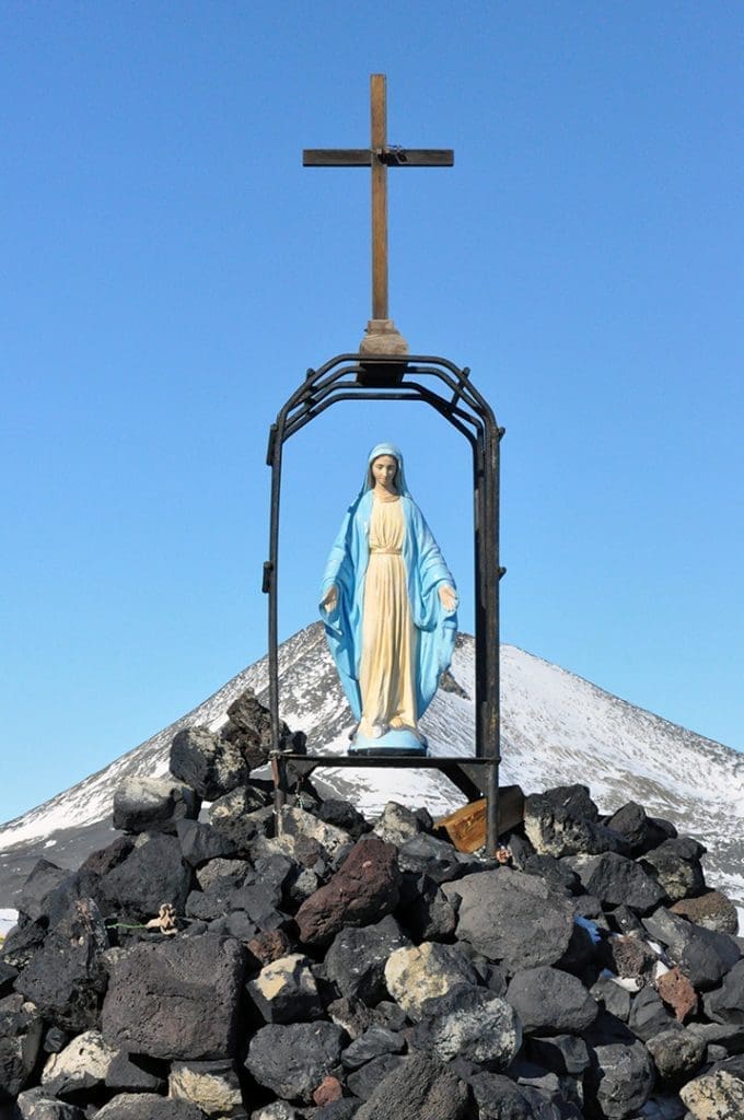 I left the Hut Point Cross for a steep hike up the mountain. About half way up, I came across “Our Lady of the Snows.” This statue of Mary rises out of the snow covered, volcanic rocks and looks down upon McMurdo Bay. It was built in memory of Richard T. Williams, a US Navy SeaBee that died in 1956 during the initial construction of this research outpost. His tractor broke through the sea ice and he fell into the water.