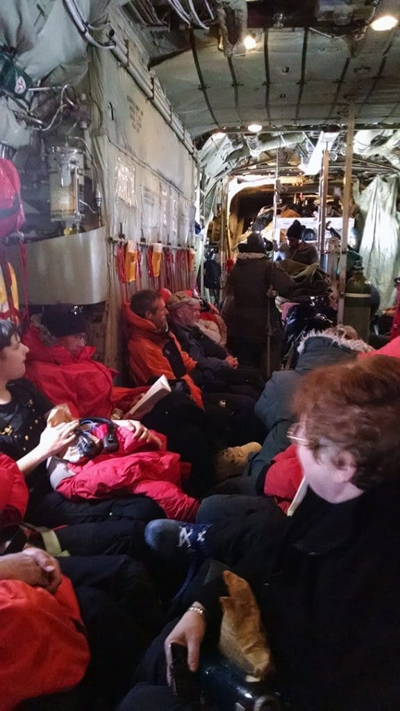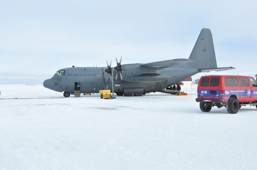 I just got off a 7-hour flight in a New Zealand Royal Air Force LC-130 cargo plane. After a couple hours of Antarctic weather delays, 52 souls in cargo strap jumpseats, one fellow who needed medical evacuation and a large pallet of cargo left the sea ice runway called “Pegasus.” The runway is named after an early aircraft that attempted to land there and crashed. The wreckage of the Pegasus is still half frozen in the sea ice.